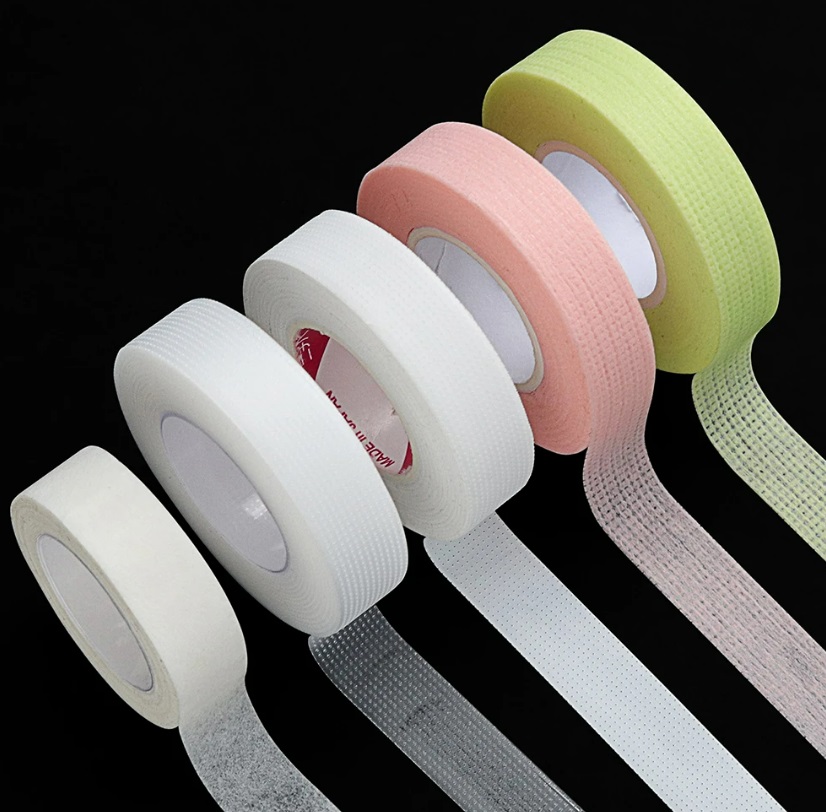 Cinta transpirable, suave y fácil de aplicar, especialmente diseñada para proteger la piel y fijar las pestañas durante la aplicación de extensiones. Disponible en varios colores y materiales.